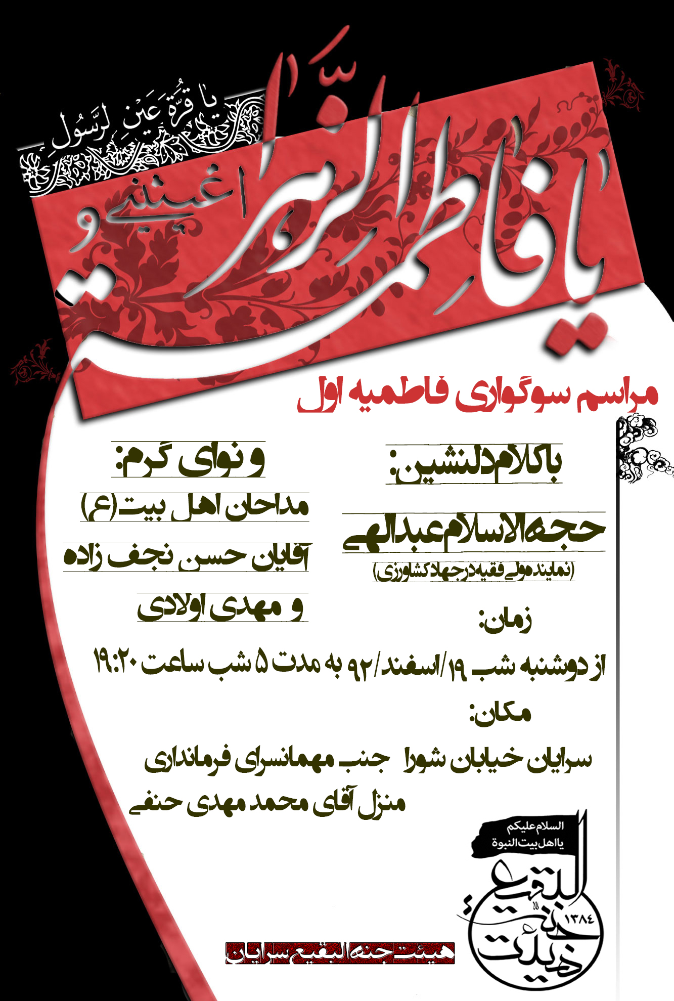 فاطمه ناله جان کاه کشید و دست های خود را باز کرد و فرزندانش را مدتی به سینه اش چسبانید.»